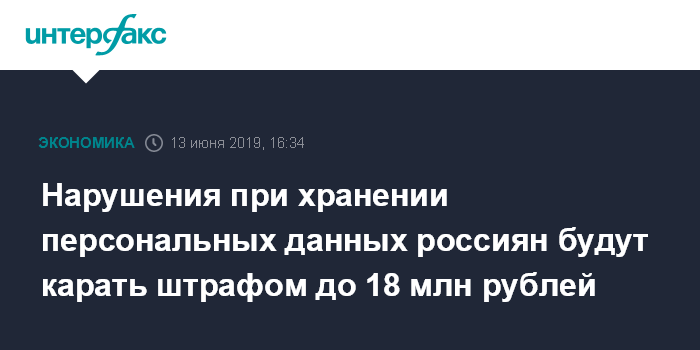 Нарушения при хранении персональных данных россиян будут карать штрафом до 18 млн рублей