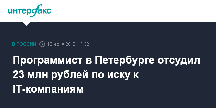 Таким образом, Приморский суд Петербурга взыскал в пользу программиста в общей сложности более 23 млн руб. без учета взысканной с ответчиков госпошлины.