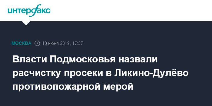Москва. 13 июня. INTERFAX.RU - В подмосковном Ликино-Дулёво просеку расчищали не для дороги к мусорному полигону, а из соображений пожарной безопасности, сообщили "Интерфаксу" в пресс-службе комитета лесного хозяйства Московской области.