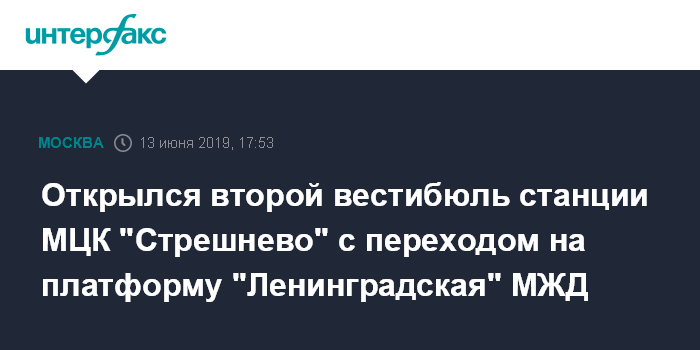 Москва. 13 июня. INTERFAX.RU - На станции "Стрешнево" Московского центрального кольца открылся второй вестибюль, имеющий переход с железнодорожной платформой "Ленинградская" Рижского направления Московской железной дороги. Об этом сообщили "Интерфаксу" в пресс-службе метрополитена в четверг.