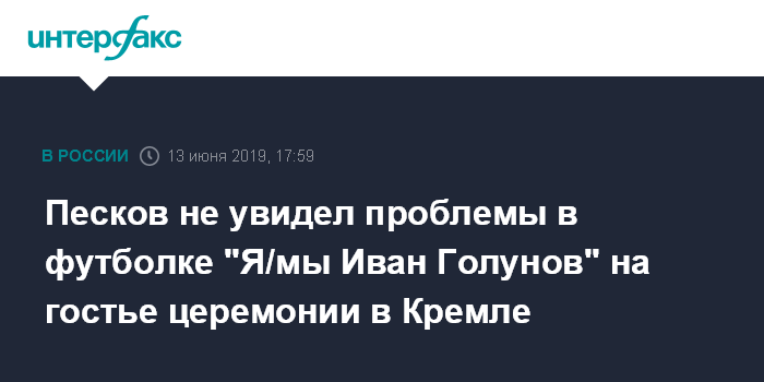 Москва. 13 июня. INTERFAX.RU - В Кремле не увидели ничего особенного в том, что на церемонии вручения президентом России госнаград в среду в первом ряду сидела дочь одного из лауреатов - пианиста Николая Луганского - в футболке "Я/мы Иван Голунов".
