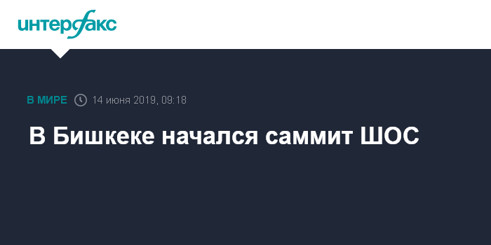 Москва. 14 июня. INTERFAX.RU - Саммит Шанхайской организации сотрудничества (ШОС) начался в пятницу в Бишкеке.