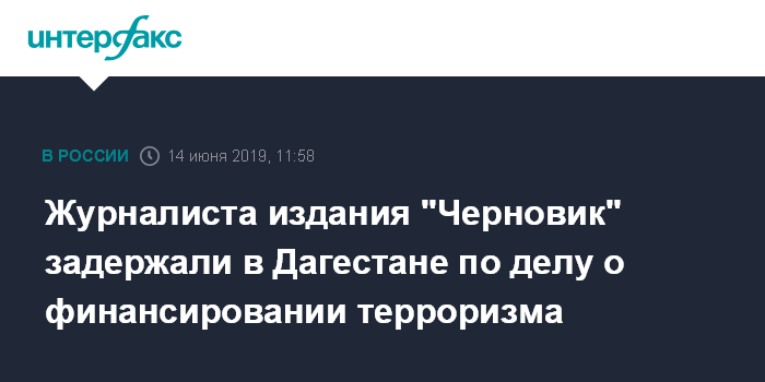 Москва. 14 июня. INTERFAX.RU - Следственные органы в Дагестане возбудили дело о финансировании терроризма в отношении журналиста газеты "Черновик", сообщил в пятницу "Интерфаксу" информированный источник.