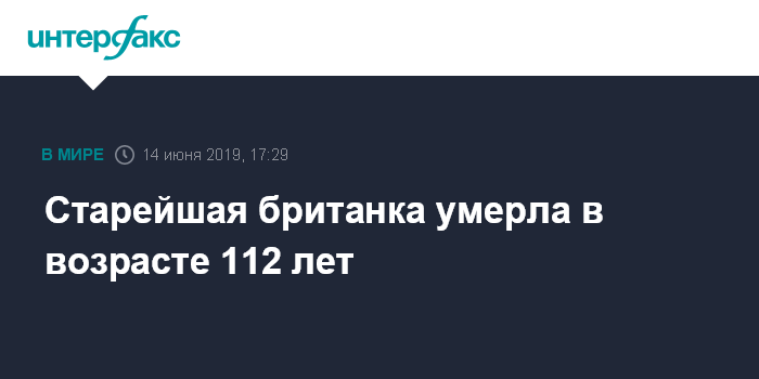 Москва. 14 июня. INTERFAX.RU - В Великобритании умерла старейшая подданная Ее величества. Грейс Джонс было 112 лет. О ее смерти сообщила ее 81-летняя дочь Дейдре Маккарти, пишет Guardian.