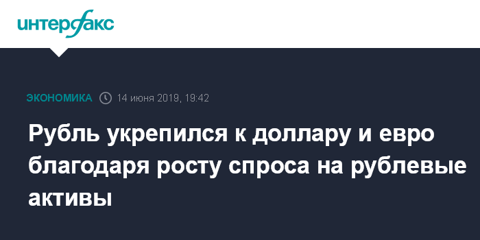 Как отмечают эксперты "Интерфакс-ЦЭА", рубль укрепляется к доллару и евро на вечерних торгах в условиях спроса на рублевые активы в рамках стратегии carry trade (индекс чистых цен ОФЗ RGBI повысился к вечеру на 0,15%, до 140,72 пункта). Участники рынка оценили заявление регулятора о наличии возможности дальнейшего снижения ключевой ставки уже в ближайшее время в связи с ожиданиями снижения темпов роста инфляции в 2019 году (до 4,2-4,7% с 4,7-5,2%).