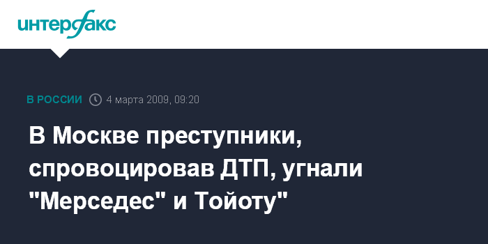В тот же день, в 17:40 в Электролитном проезде около дома №12 двое неизвестных, следуя на автомашине "Daewoo", спровоцировали ДТП с автомашиной "Тойота", за рулем которой находился менеджер одной из фирм. После этого, угрожая физической расправой, злоумышленники похитили автомобиль "Тойота" и на нем скрылись. Ущерб составил 1,5 млн рублей.