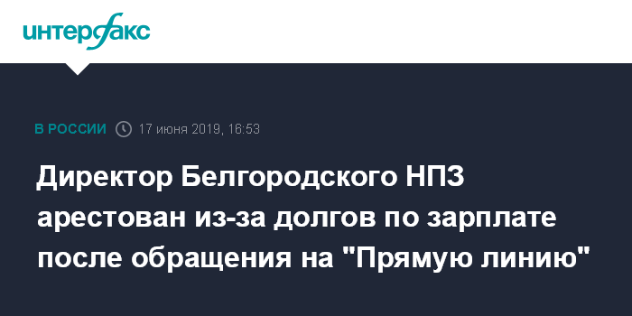 Директор Белгородского НПЗ арестован из-за долгов по зарплате после обращения на "Прямую линию"