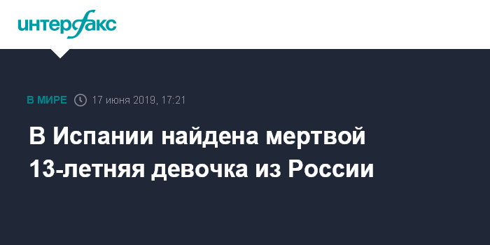 Москва. 17 июня. INTERFAX.RU - Полиция Каталонии расследует дело о смерти российской девочки в возрасте 13 лет, тело которой было обнаружено в городе Матаро, сообщает в понедельник сайт канала TeleCinco.