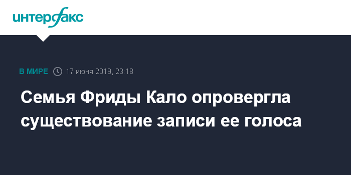 Москва. 17 июня. INTERFAX.RU - Внучатая племянница мексиканской художницы Фриды Кало опровергла существование записи ее голоса, сообщает в понедельник газета Milenio.