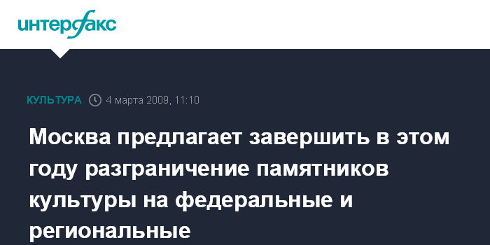 Москва предлагает завершить в этом году разграничение памятников культуры на федеральные и региональные