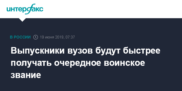 Москва. 19 июня. INTERFAX.RU - Министерство обороны изменит порядок получения воинского звания "старший лейтенант", сообщили в среду "Известия".