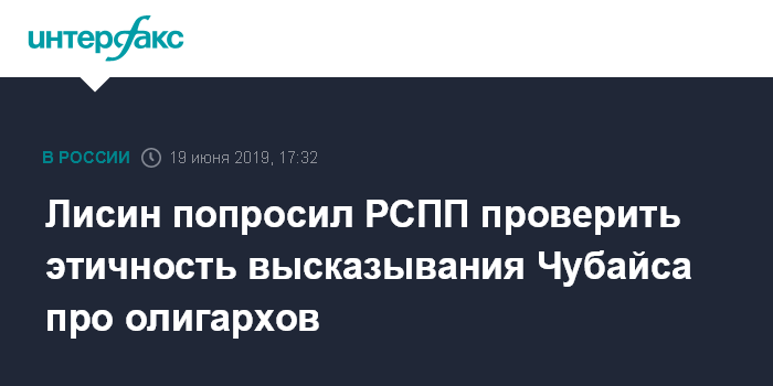 Он попросил "профильные службы" РСПП дать оценку этих высказываний. По словам собеседника агентства, в протокол заседания этот пункт решено было не вносить, при этом комиссию по этике РСПП попросят проанализировать высказывания Чубайса.