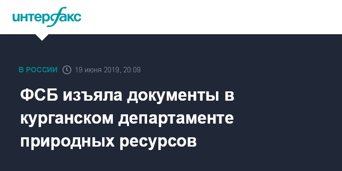 Москва. 19 июня. INTERFAX.RU - Управление ФСБ России по Курганской области провело выемку документов в областном департаменте природных ресурсов. Об этом сообщили агентству "Интерфакс" в пресс-службе правительства региона.
