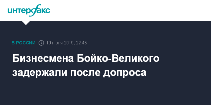 Москва. 19 июня. INTERFAX.RU - Предприниматель Василий Бойко-Великий задержан по делу о растрате, сообщил "Интерфаксу" его адвокат Алексей Аверьянов.