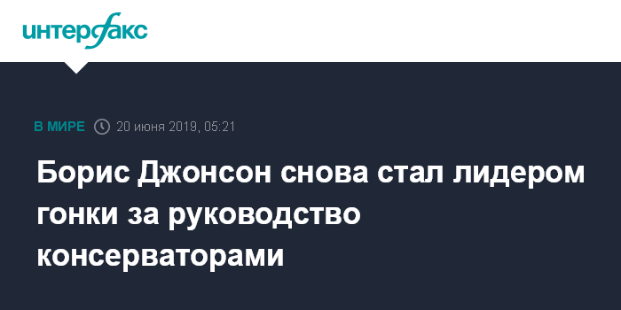Москва. 20 июня. INTERFAX.RU - Экс-глава МИД Великобритании Борис Джонсон лидирует по итогам третьего тура голосования за лидера Консервативной партии, сообщил телеканал Sky News.