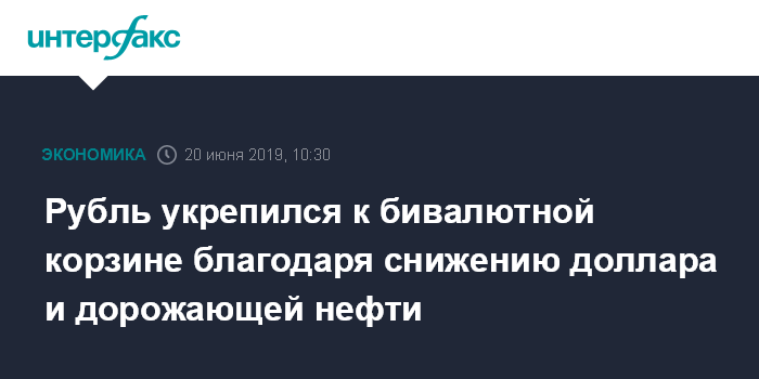 Как отмечают эксперты "Интерфакс-ЦЭА", рубль укрепляется к бивалютной корзине на старте торгов четверга благодаря падению доллара к большинству мировых валют после заседания американского центробанка. ФРС по итогам заседания, проходившего 18-19 июня, сохранила процентную ставку по федеральным кредитным средствам (federal funds rate) в диапазоне от 2,25% до 2,5% годовых, что совпало с прогнозами экономистов и участников рынка.