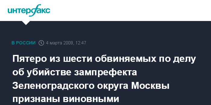 Пятеро из шести обвиняемых по делу об убийстве зампрефекта Зеленоградского округа Москвы признаны виновными