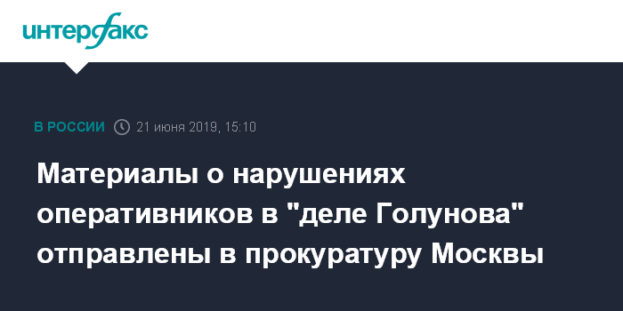 Материалы о нарушениях оперативников в "деле Голунова" отправлены в прокуратуру Москвы