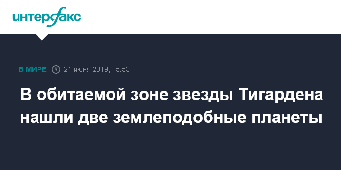 Москва. 21 июня. INTERFAX.RU - Астрономы из проекта CARMENES обнаружили две экзопланеты у звезды Тигардена, которая находится всего в 12,5 световых годах от Солнца, сообщает N+1 со ссылкой на журнал Astronomy & Astrophysics.