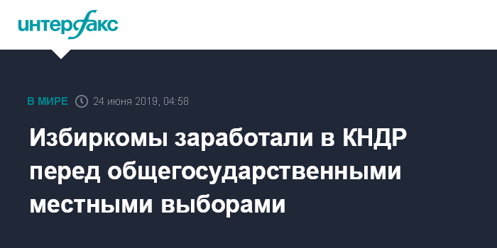 Москва. 24 июня. INTERFAX.RU - Северная Корея организовала работу избирательных комиссий в преддверии общенациональных местных выборов, назначенных на следующий месяц, сообщает ЦТАК.