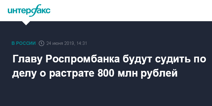 Главу Роспромбанка будут судить по делу о растрате 800 млн рублей