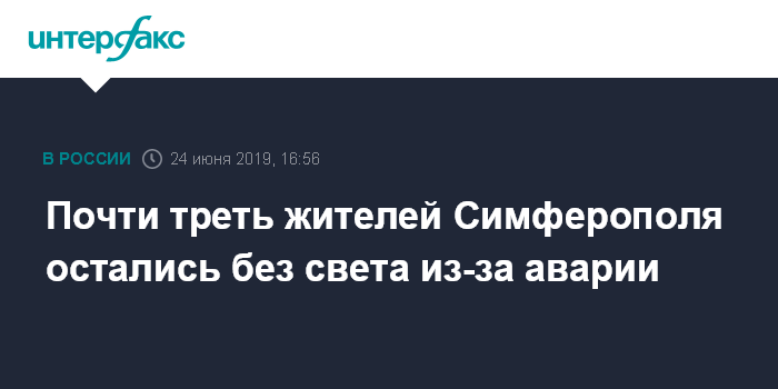 Москва. 24 июня. INTERFAX.RU - Около 100 тысяч потребителей остались без электроэнергии в понедельник в Симферополе, сообщила пресс-служба МЧС Крыма.