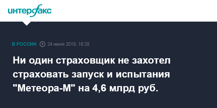 Ни один страховщик не захотел страховать запуск и испытания "Метеора-М" на 4,6 млрд руб.