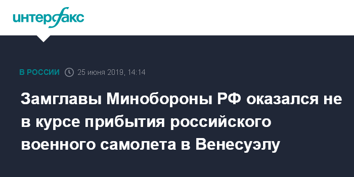 Москва. 25 июня. INTERFAX.RU - В министерстве обороны РФ не стали комментировать информацию о прибытии в Венесуэлу российского военного самолета.
