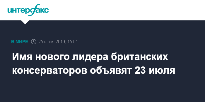 Москва. 25 июня. INTERFAX.RU - Британская Консервативная партия 23 июля объявит, кто победил в борьбе за пост лидера партии, сообщают во вторник британские СМИ.