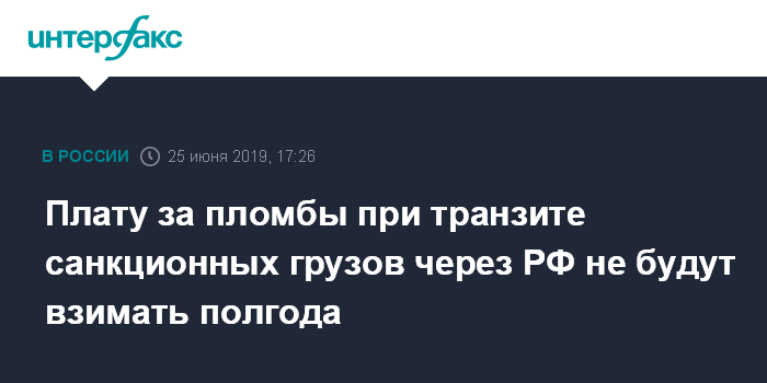 Москва. 25 июня. INTERFAX.RU - Плата за наложение, снятие и постановку на контроль пломб при транзитных перевозках грузов через РФ, а также штрафы не будут взиматься первые шесть месяцев - для адаптации грузоперевозчиков.