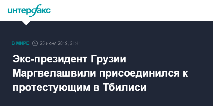 Москва. 25 июня. INTERFAX.RU - Бывший президент Грузии Георгий Маргвелашвили вечером во вторник выступил на акции протеста перед зданием парламента в Тбилиси и выразил солидарность с ее участниками.