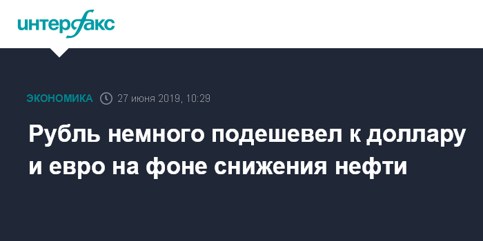 Как отмечают эксперты "Интерфакс-ЦЭА", рубль немного дешевеет к доллару и евро на старте торгов на фоне негативной динамики цен на нефть и в ожидании результатов саммита G20 в японской Осаке 28-29 июня. Накануне министр финансов США Стивен Мнучин заявил, что торговое соглашение США и Китая уже готово на 90%, и, по его мнению, американский президент Дональд Трамп и председатель КНР Си Цзиньпин смогут продвинуться в торговых переговорах в ходе встречи в Осаке на этой неделе.
