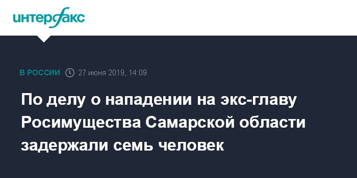 Москва. 27 июня. INTERFAX.RU - В Самарской области задержали семь подозреваемых в причастности к нападению на бывшего главу регионального управления Росимущества Айвара Кинжабаева. Об этом сообщил Следственный комитет. 10 ноября 2018 года к чиновнику домой ворвались четыре человека в масках и ударили его ножом.