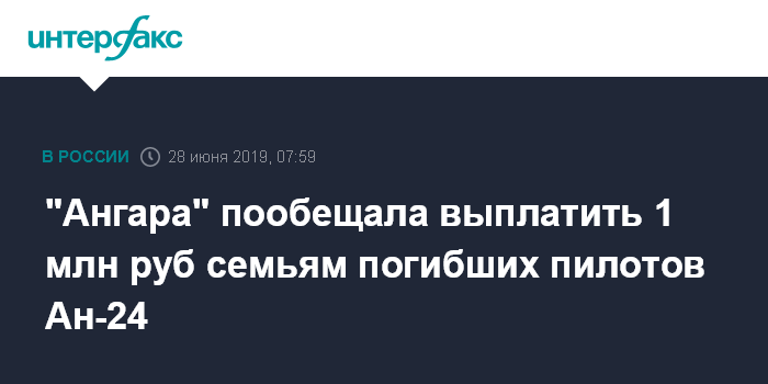 "Ангара" пообещала выплатить 1 млн руб семьям погибших пилотов Ан-24