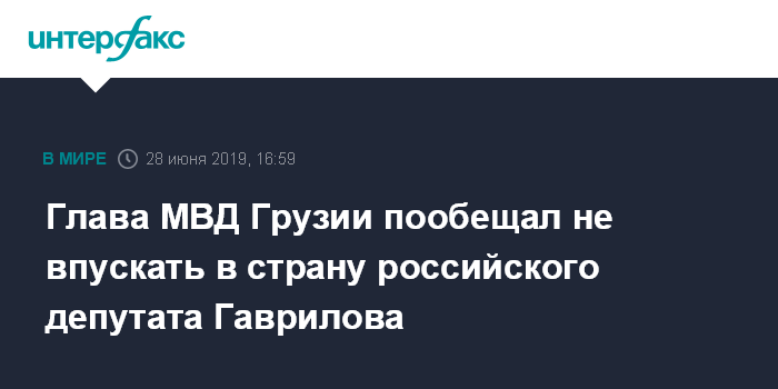 Москва. 28 июня. INTERFAX.RU - Министр внутренних дел Грузии Георгий Гахария заявил, что депутата Госдумы Сергея Гаврилова, который выразил желание снова посетить страну, не пропустят на границе.