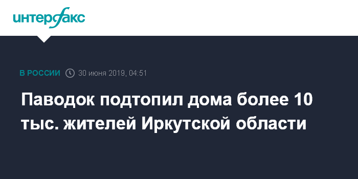 Как ранее сообщалось, по данным на вечер субботы в 48 населенных пунктах Иркутской области было подтоплено 4042 жилых домов, в которых проживает 9 тыс. 919 человек, в том числе 2 тыс. 269 детей, а также 41 социально значимый объект и 4 тыс. 106 приусадебных участков.