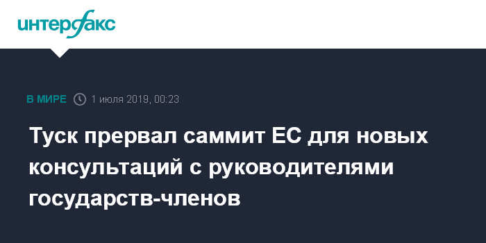 Москва. 1 июля. INTERFAX.RU - Официальный представитель главы Европейского совета Дональда Туска Пребен Ааманн сообщил о приостановке саммита ЕС, обсуждающего назначения на ключевые посты в Евросоюзе.