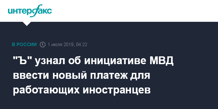 Москва. 1 июля. INTERFAX.RU - Министерство внутренних дел предложит установить новый платеж за возможность работать для временно проживающих в России или имеющих вид на жительство иностранцев, сообщает в понедельник газета "Коммерсантъ".