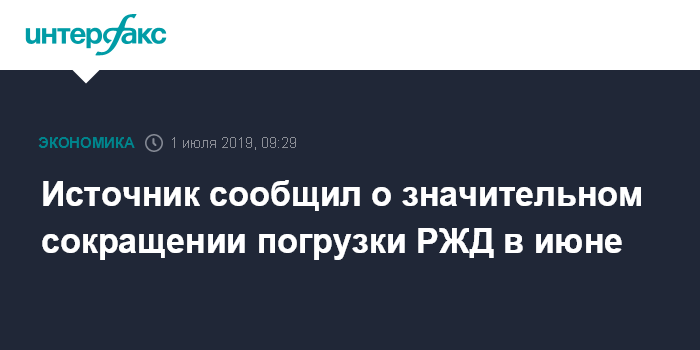 Источник сообщил о значительном сокращении погрузки РЖД в июне