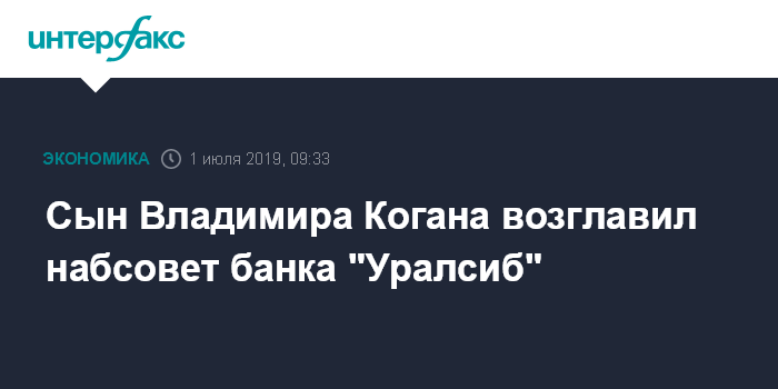 Сын Владимира Когана возглавил набсовет банка "Уралсиб"