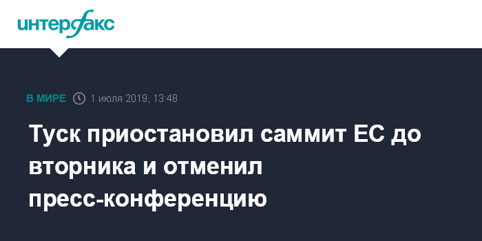 Москва. 1 июля. INTERFAX.RU - Официальный представитель председателя Европейского совета Дональда Туска Пребен Ааманн сообщил, что саммит ЕС, обсуждающий кандидатуры на высшие посты в ЕС, приостановлен.