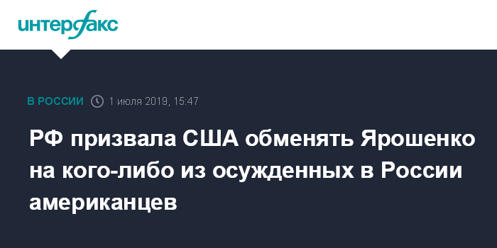 РФ призвала США обменять Ярошенко на кого-либо из осужденных в России американцев