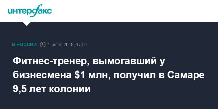 Москва. 1 июля. INTERFAX.RU - Фитнес-тренер Александр Красков и трое его подельников осуждены за вымогательство $1 млн у самарского бизнесмена, сообщается в понедельник на сайте Советского суда Самары.