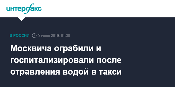 Москвича ограбили и госпитализировали после отравления водой в такси