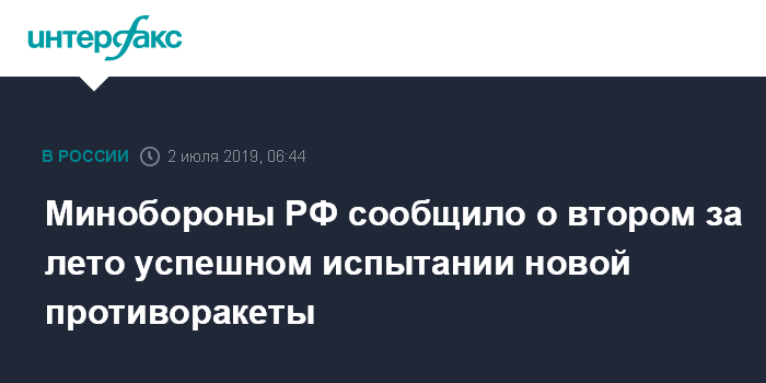Минобороны РФ сообщило о втором за лето успешном испытании новой противоракеты