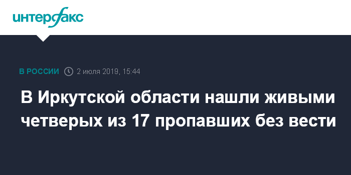 В Иркутской области нашли живыми четверых из 17 пропавших без вести