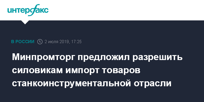 Минпромторг предложил разрешить силовикам импорт товаров станкоинструментальной отрасли