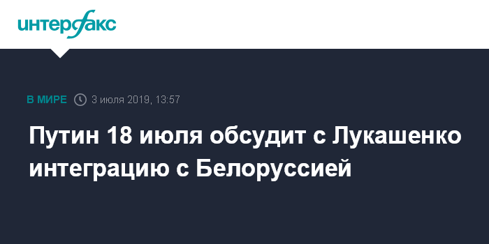 Путин 18 июля обсудит с Лукашенко интеграцию с Белоруссией