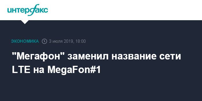 Москва. 3 июля. INTERFAX.RU - "Мегафон" решил переименовать сеть LTE: теперь на устройствах его клиентов будет отображаться значок MegaFon#1, который обозначает первое место в рейтинге компании Ookla по скорости интернета.