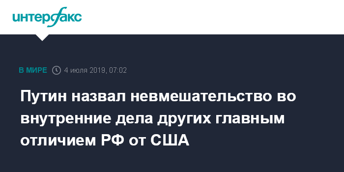 Путин назвал невмешательство во внутренние дела других главным отличием РФ от США